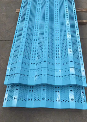 金屬防風抑塵網(wǎng)板材厚度0.5mm-1.5mm之間,均是由數(shù)控設(shè)備進行沖孔,成型,再進行雙面高壓靜電粉末噴涂的表面抗腐蝕處...